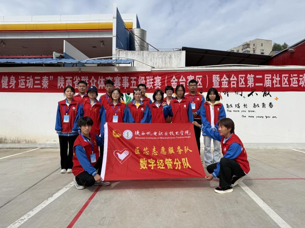2025年9月30日上午8时至12时,陕西机电职业技术学院数字经管学院团总支匠芯青年志愿服务队组织15名青年志愿者走进宝福路东社区,深度参与2025年社区运动会。活动中,5名同学代表数字经管学院投身跳绳比赛,另有10余名志愿者主动承担赛事服务工作,以多元行动展现青年担当,赛后全体参与同学参加颁奖礼。